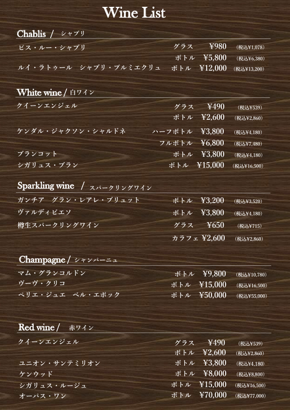牡蠣にピッタリのワインなど、各種取り揃えています。